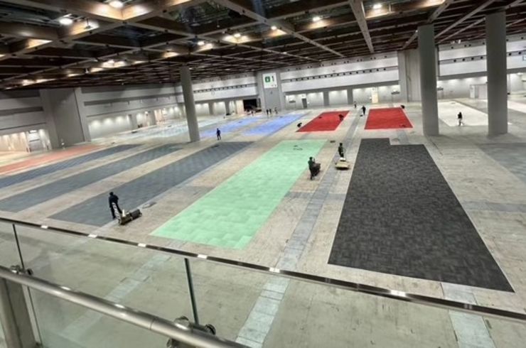 厚みのあるタイルカーペットは疲れにくく、イベント会場の床を傷つける心配もないほか、色数も豊富にご用意しておりますので多彩な組み合わせが可能で、イベント内容に合わせたデザインに施工できます。